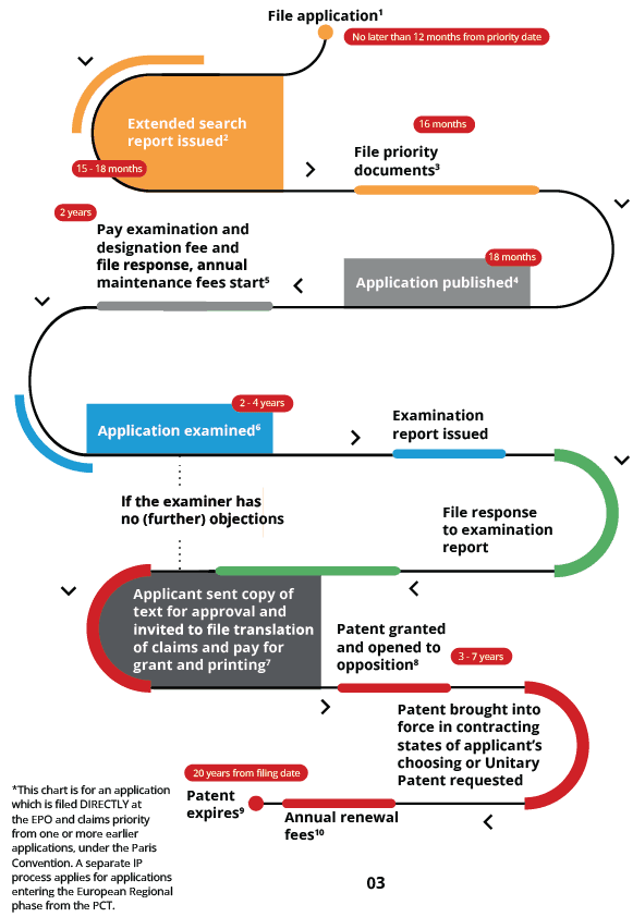 The prosecution stages of a European patent application (claiming priority*)